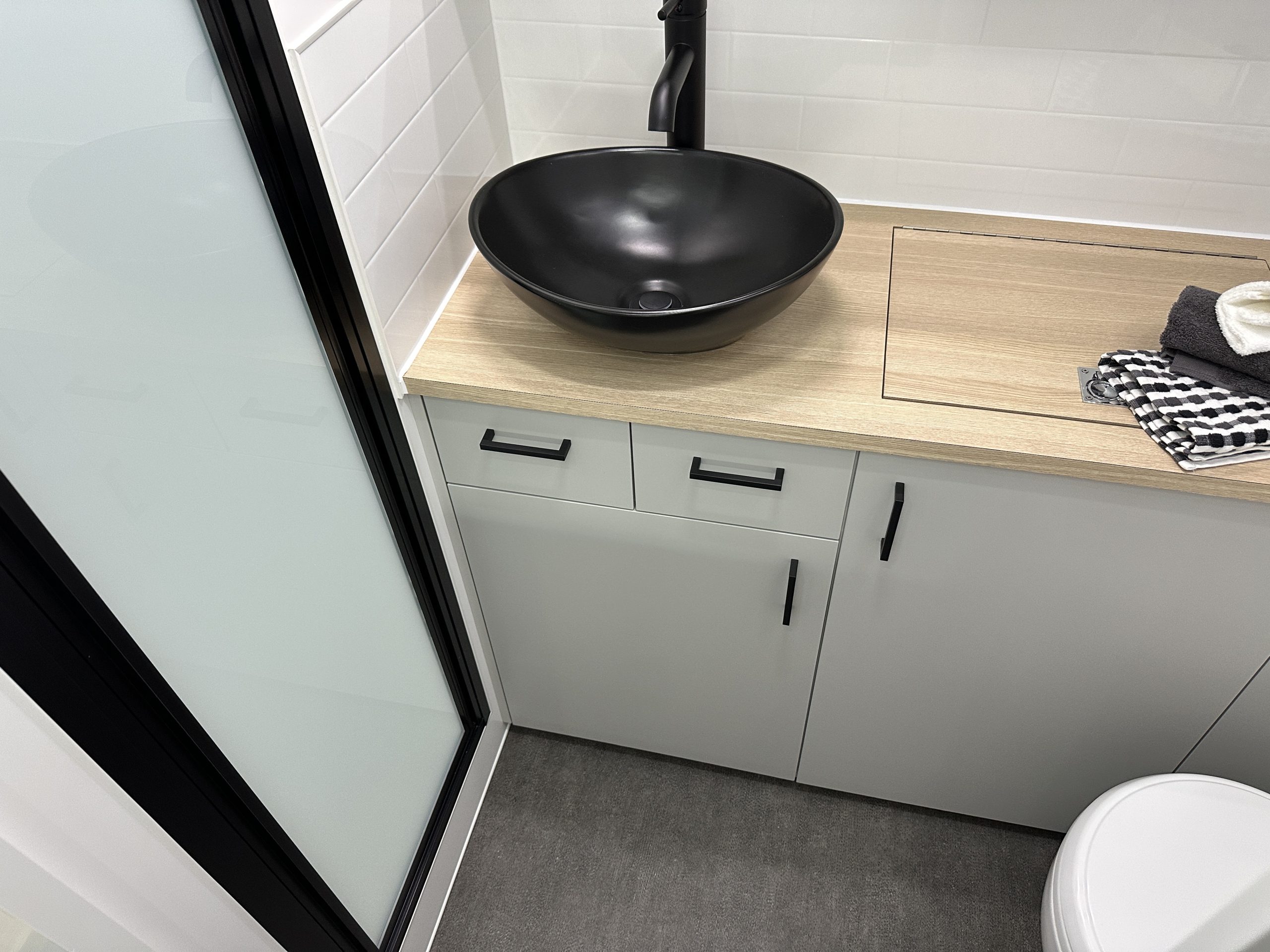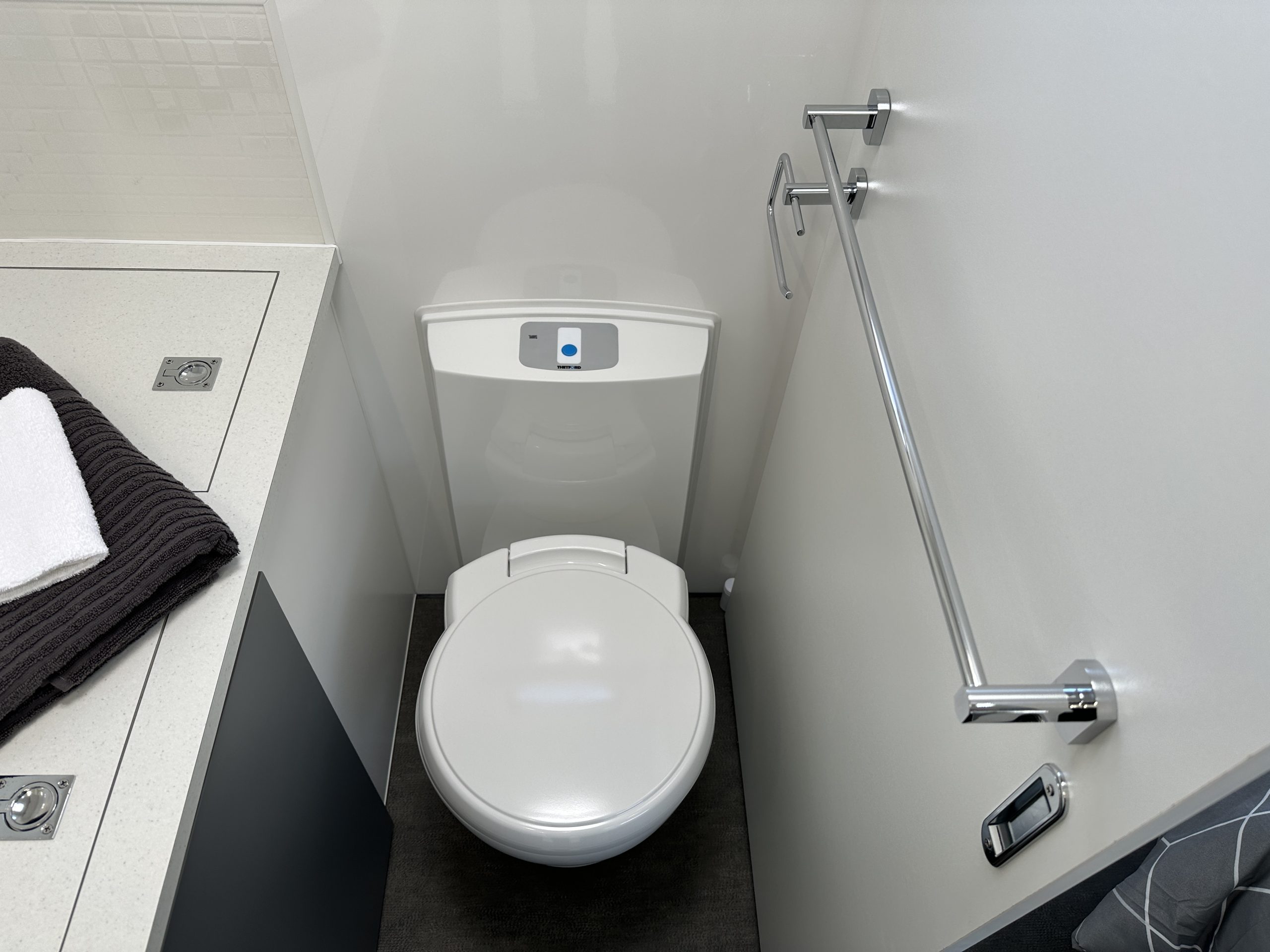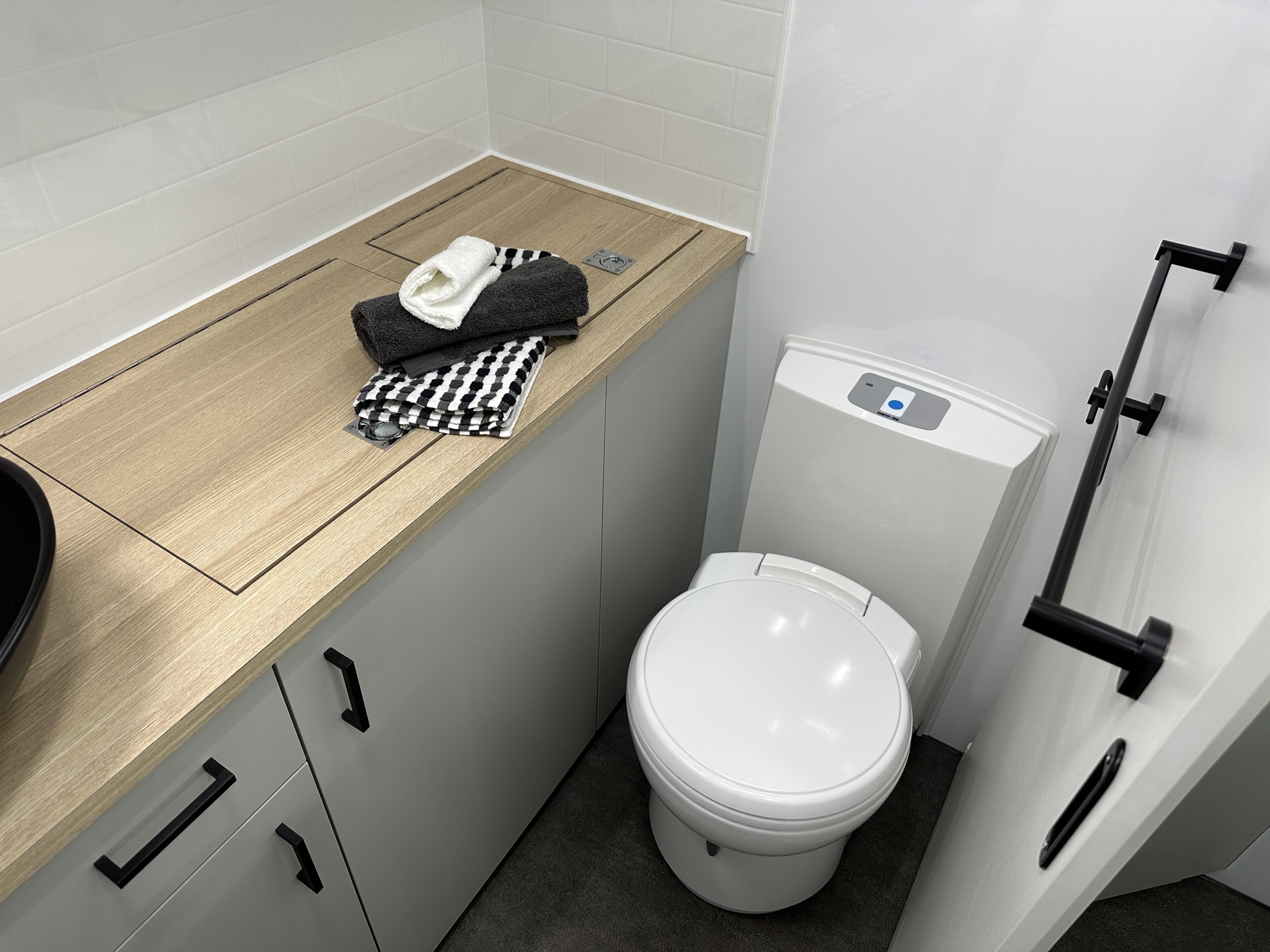 - Full Ensuite with Sliding Door, Mirror, Ceramic Bowl Basin, Tap, Laundry Shoot, Cassette Toilet, 2 x Towel Rails, Toilet Roll Holder, Window & Hatch/Fan with LEDs