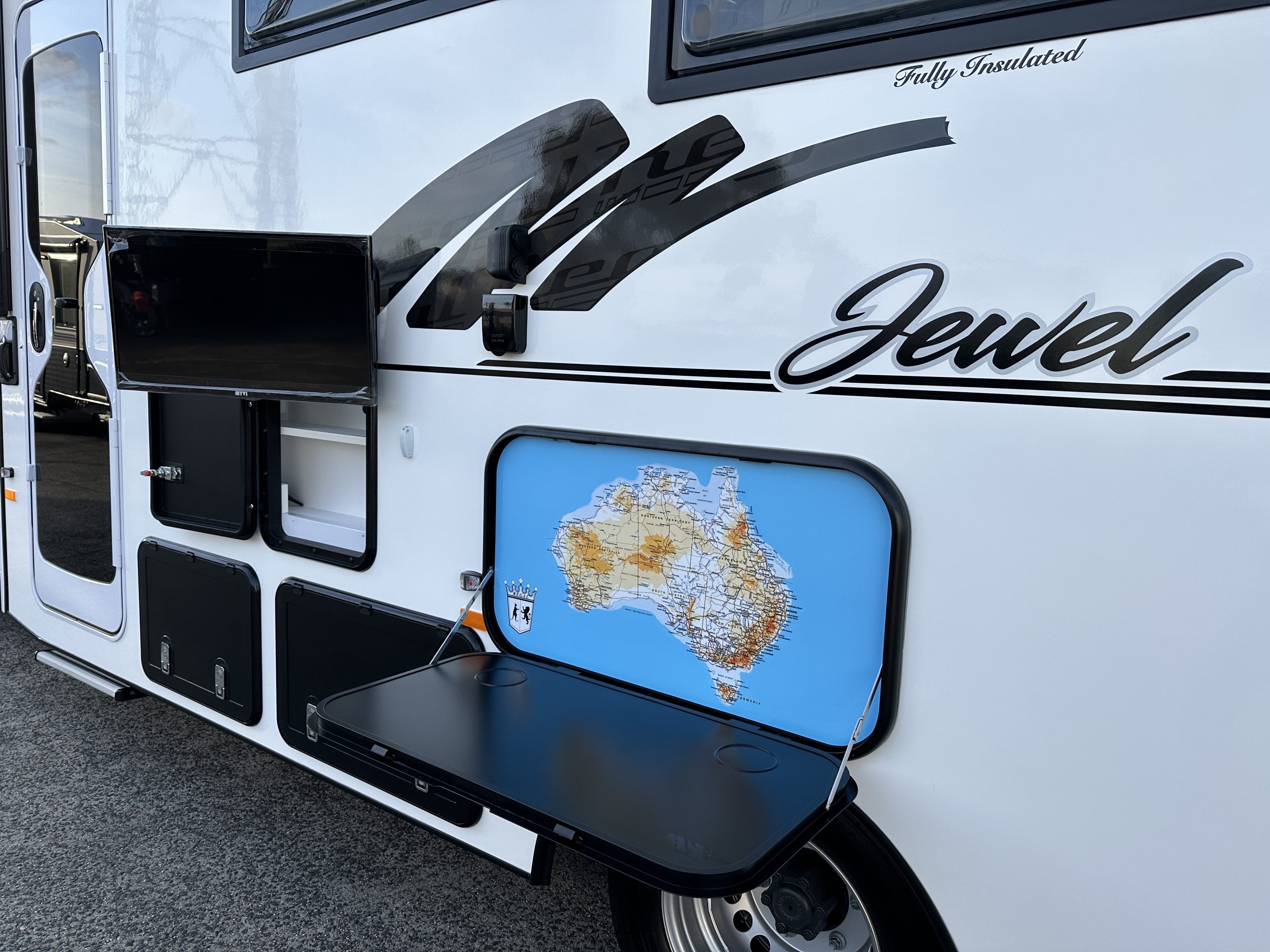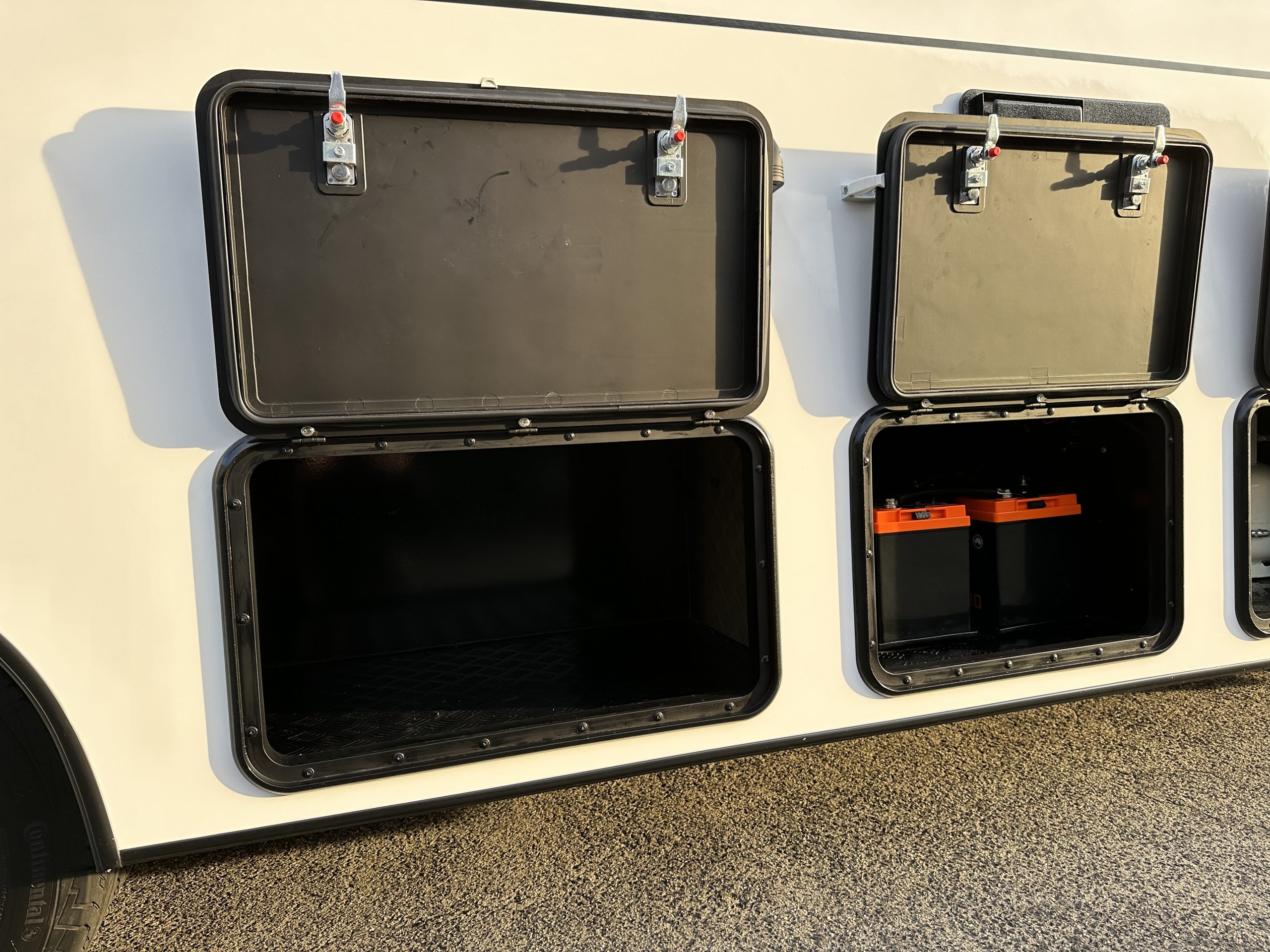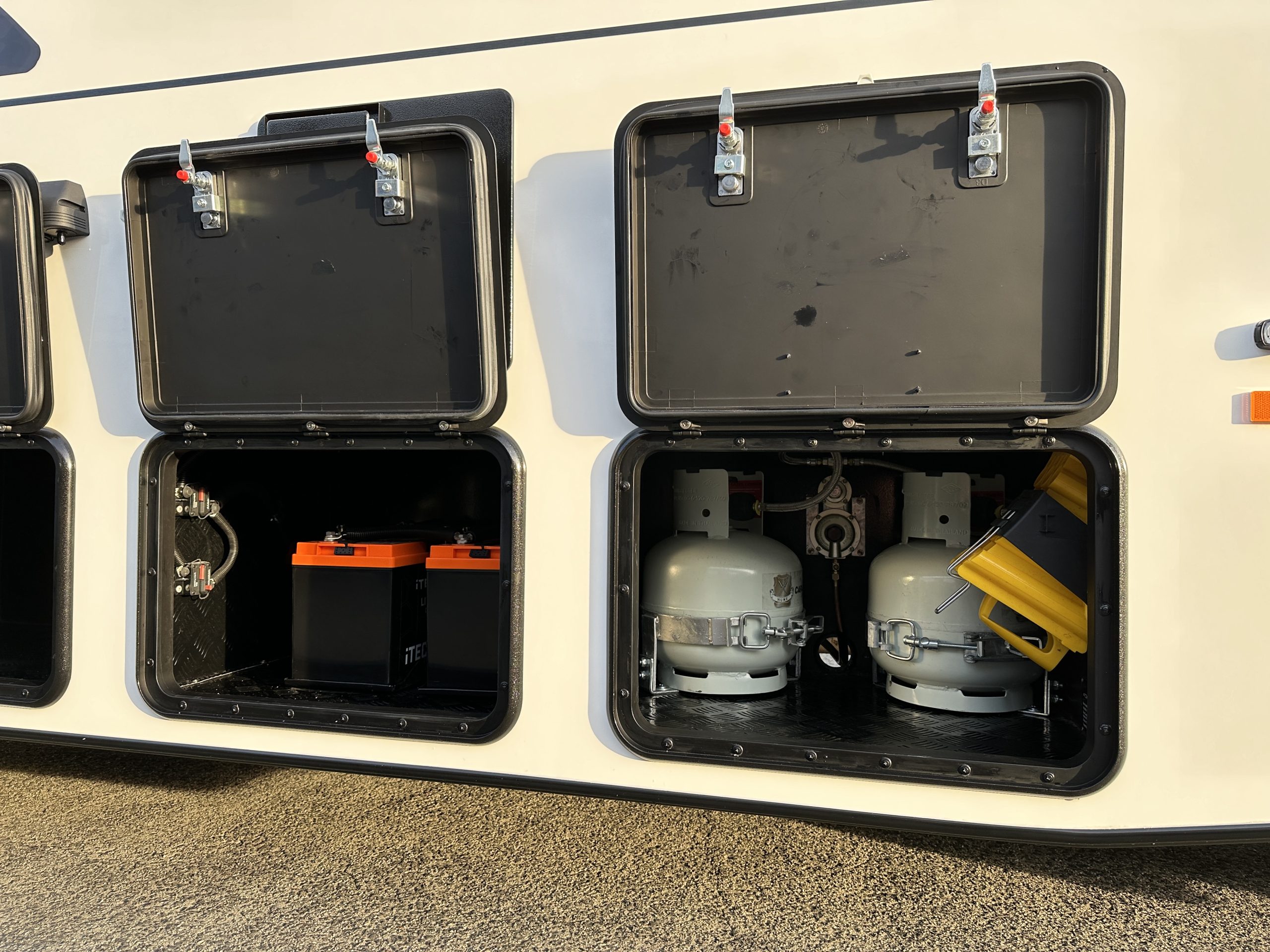 - 3 x Lockers on Drivers Side, 1 x Gas Compartment, 1 x Battery Compartment & 1 x Storage