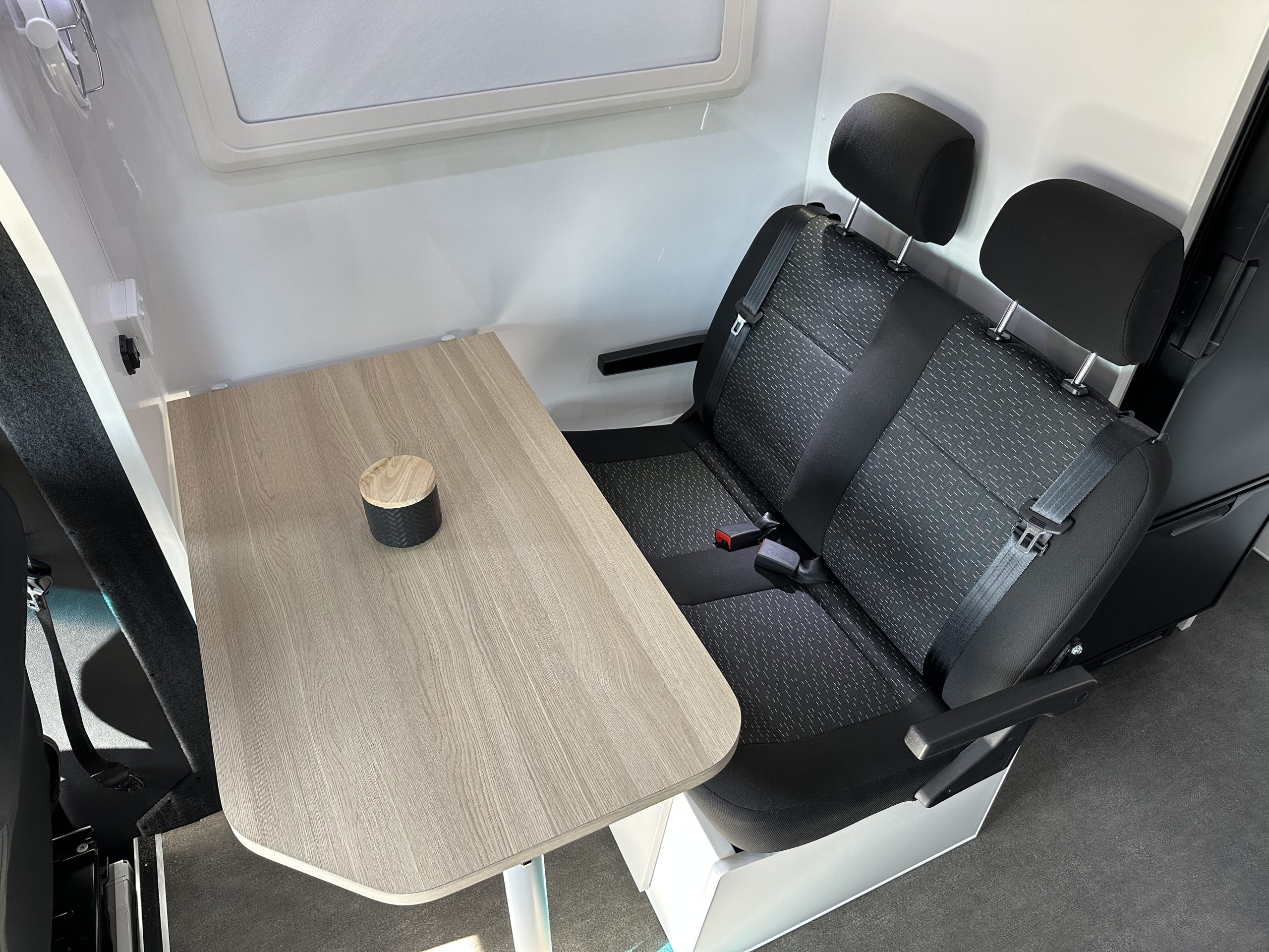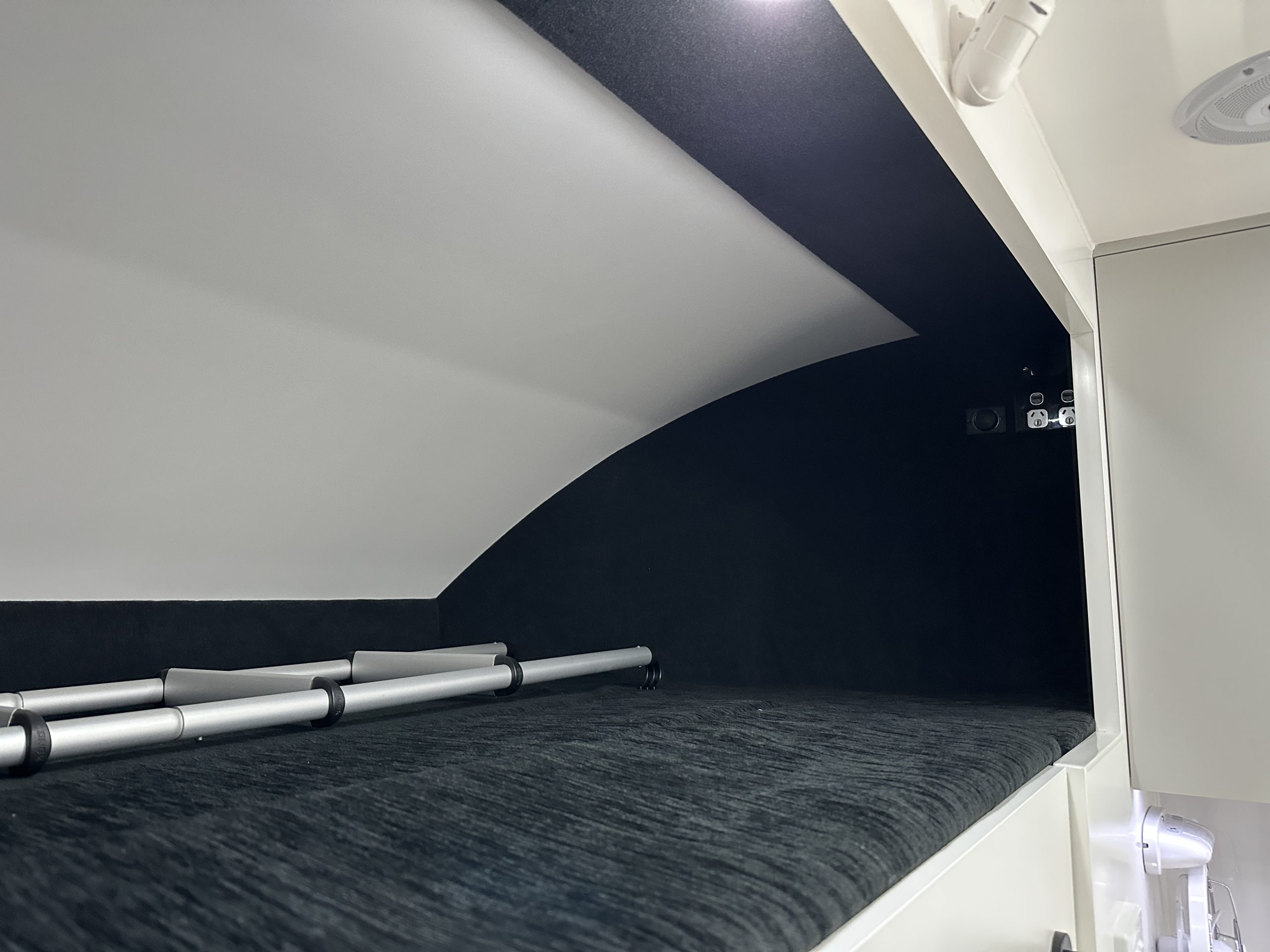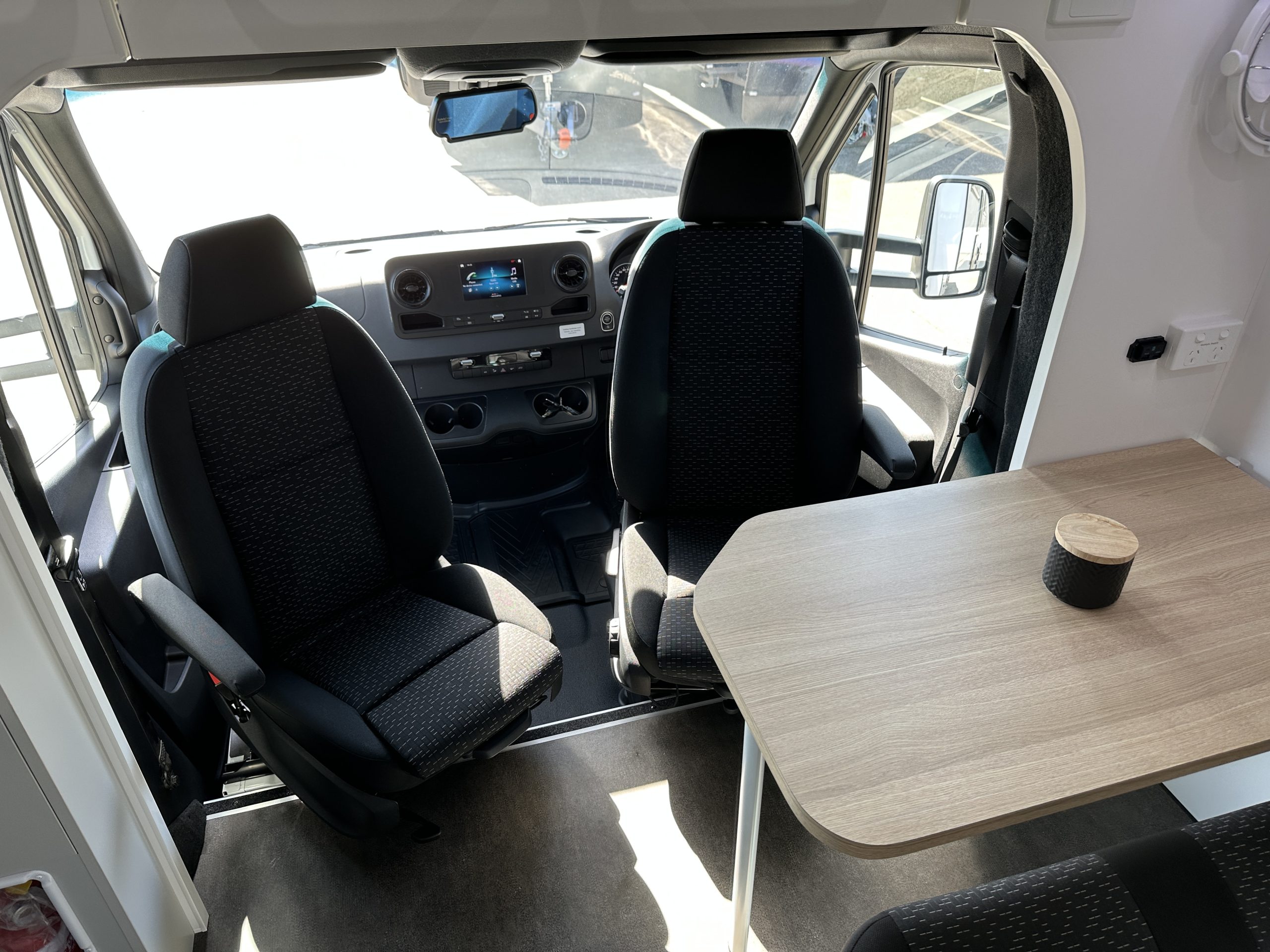 - Double Row Seat with Two Seatbelts, Headrests, Removable Table, Map Reading Light, Double Powerpoint, USB/USBC Ports, Window, Adjustable Fan, Overhead Cupboards with LED Strip Light