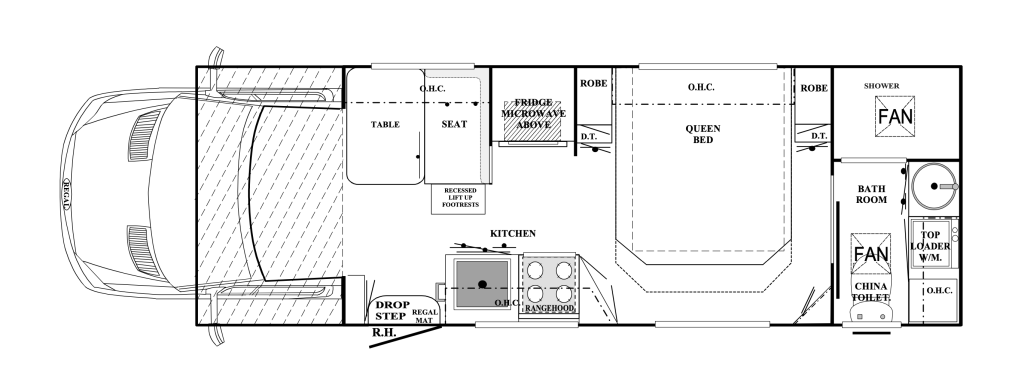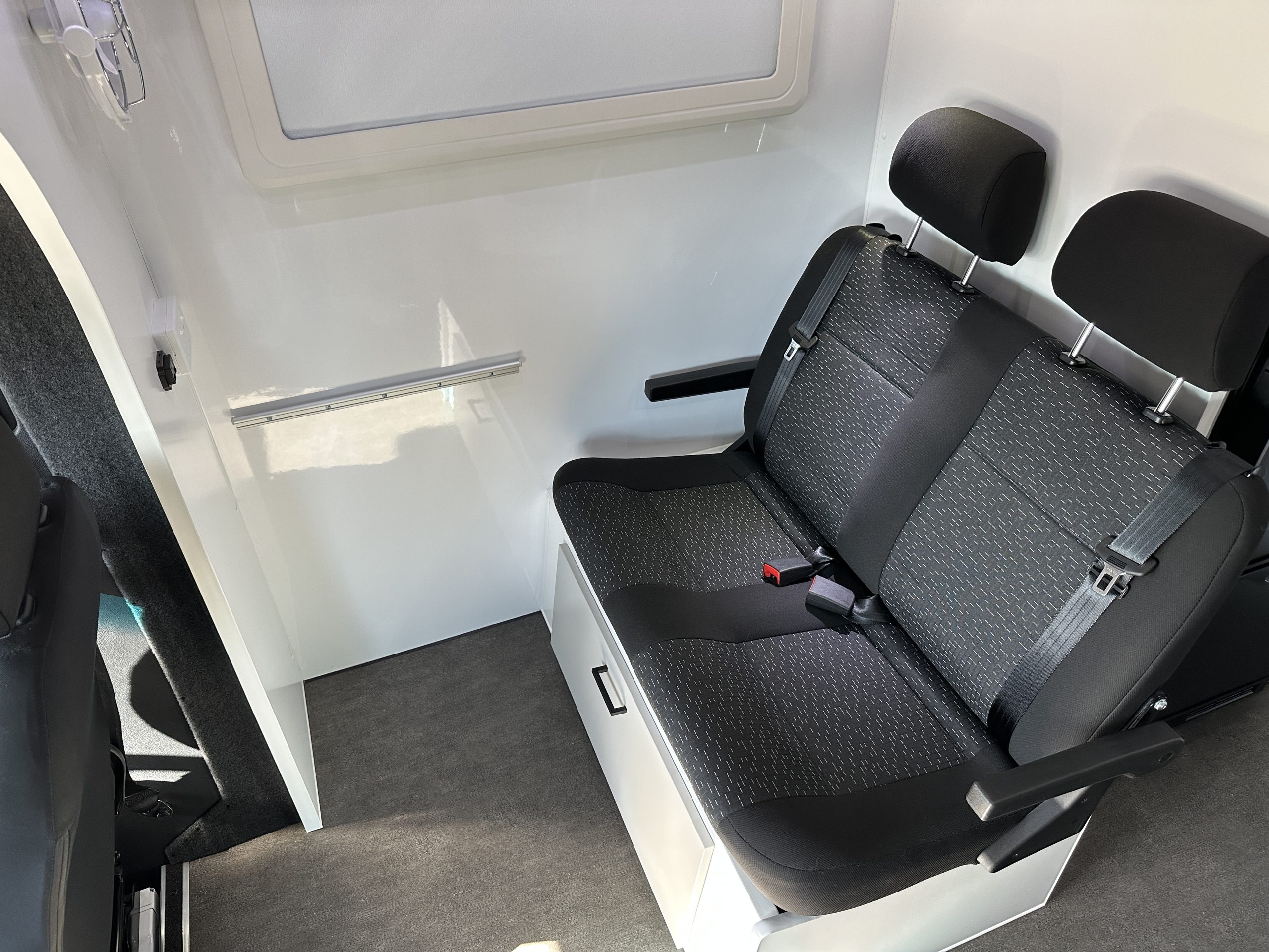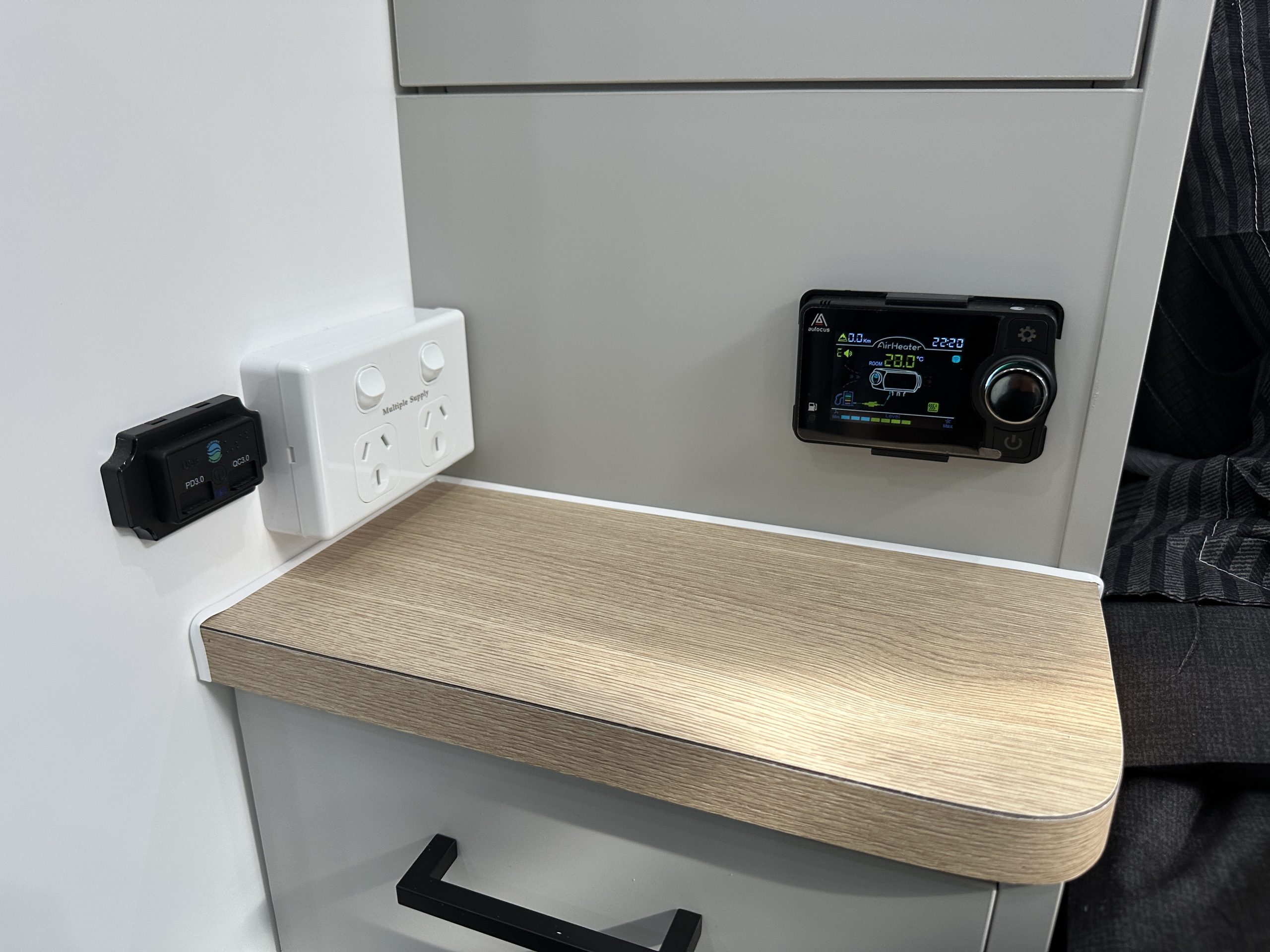 - Double Row Seat with Two Seatbelts, Headrests, Removable Table, Map Reading Light, Double Powerpoint, USB/USBC Ports, Window, Adjustable Fan, Overhead Cupboards with LED Strip Light