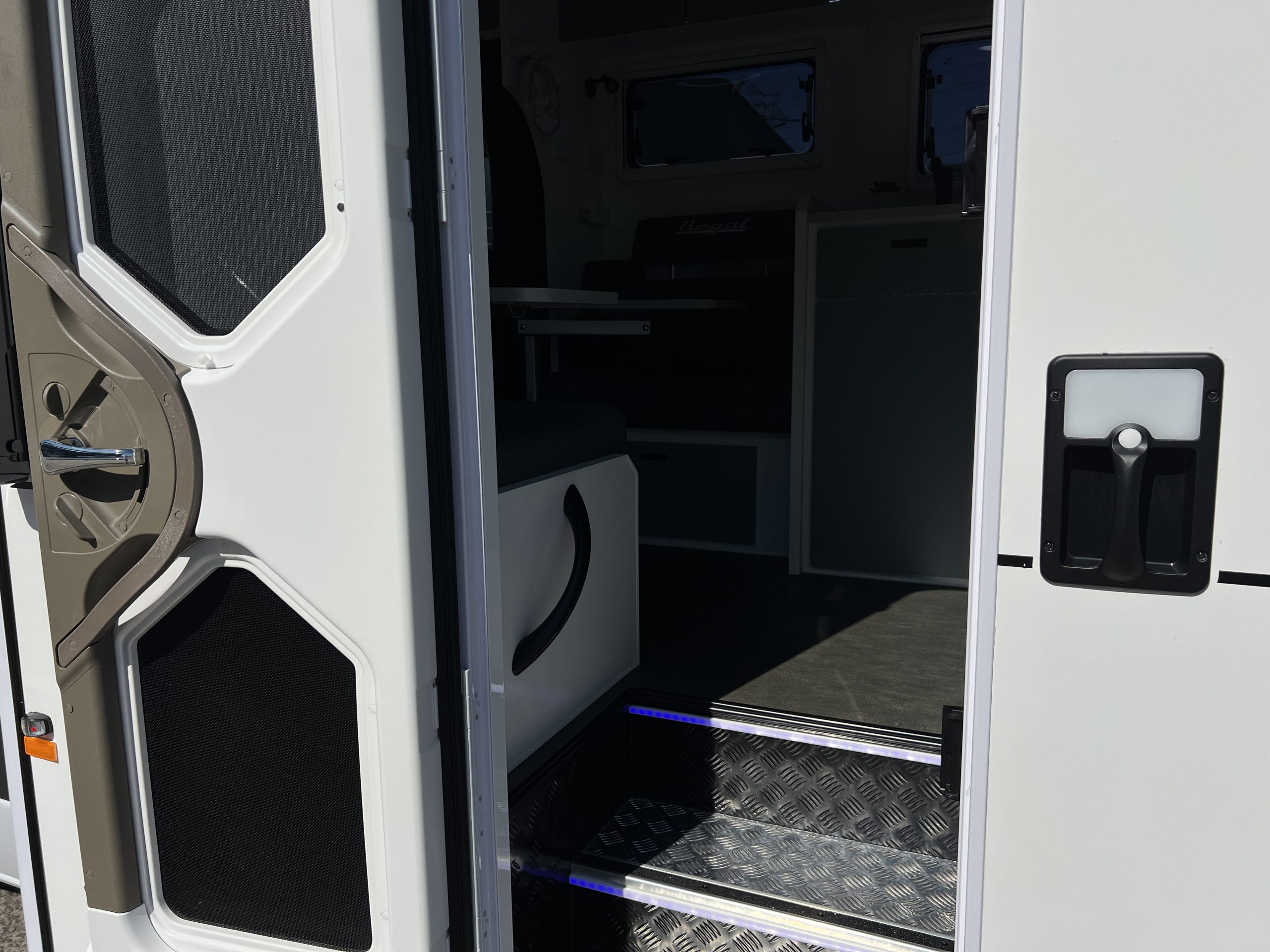 - Double Entry Step with LED Strip Lights & Grab Handle