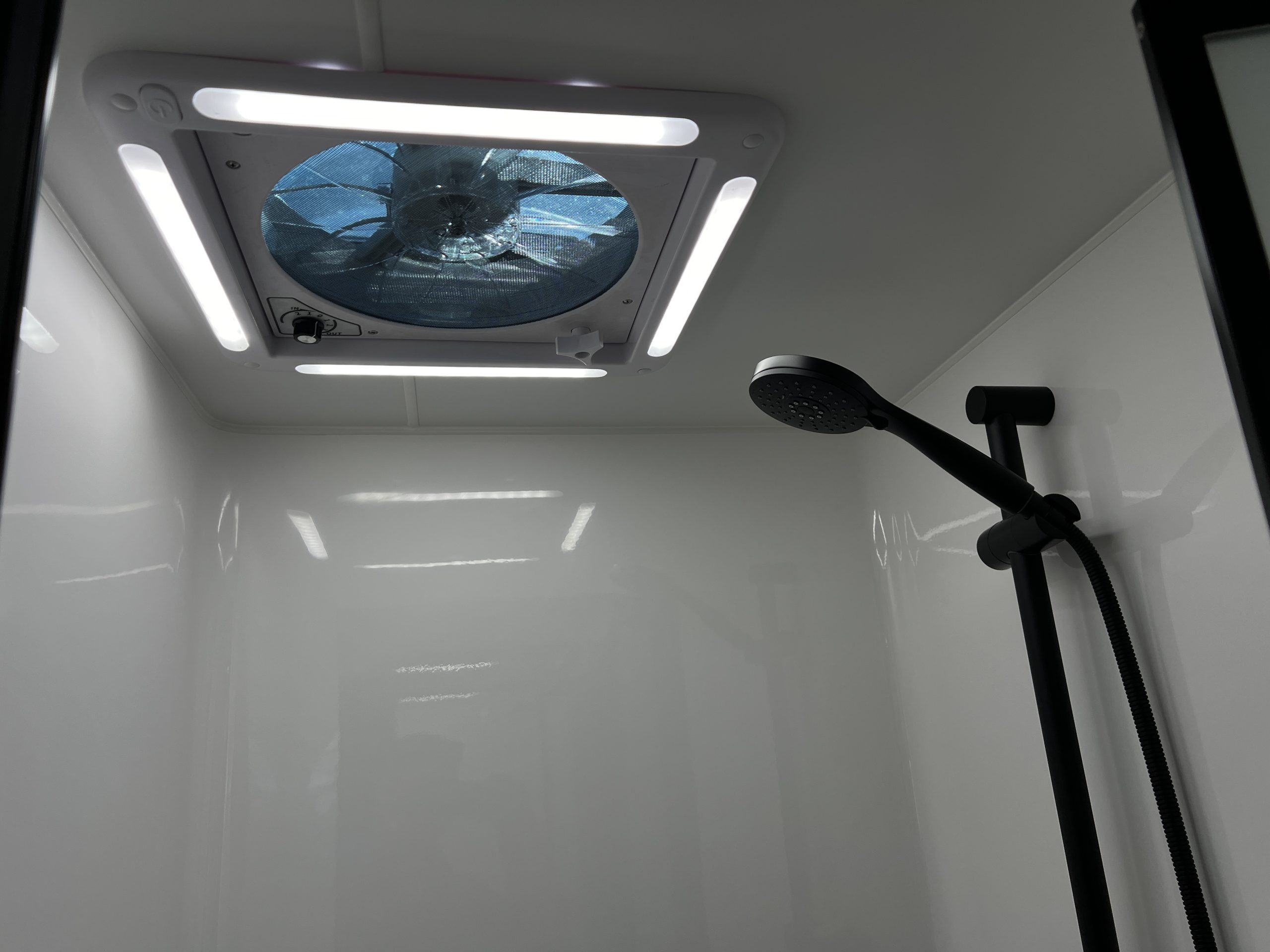 - Separate Fibreglass Shower with Privacy Door & Hatch/Fan with LEDs