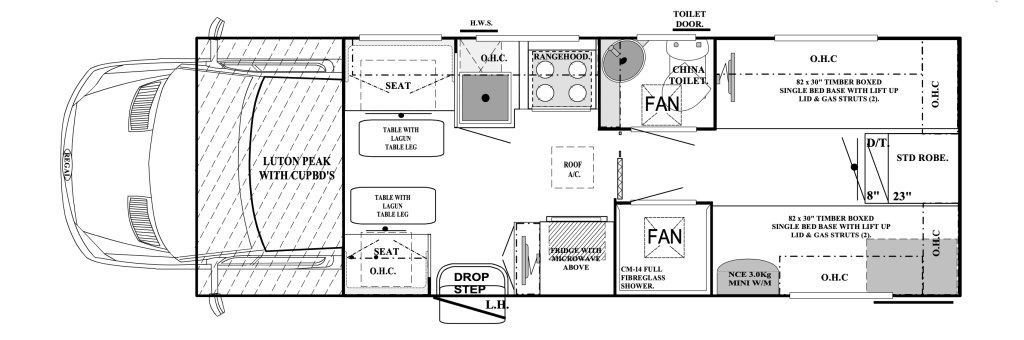- 3 x Lockers on Drivers Side (1 x Gas Compartment & 2 x Storage)