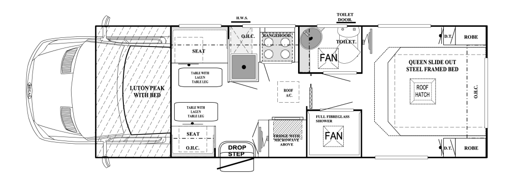 - Roof Hatch & All Windows with Blinds/Fly Screens